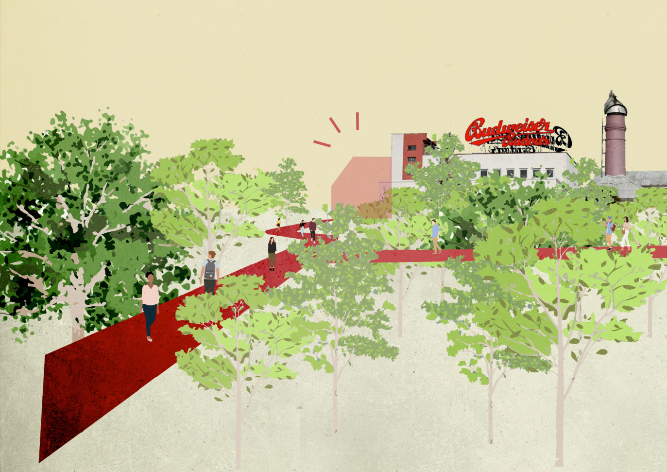 Aby se Budvar skutečně otevřel, musí se stát nedílnou součástí města.Proto k návrhu epřistupujeme pouze jako k výrobnímu závodu, ale jako k návrhu místního centra, čtvrti — Budvar districtu. Tomu odpovídá strategie a koncepce, které se používají při tvorbě obyvatelných a atraktivních měst a veřejných stranství. Věříme, že takový přístup je klíčovou složkou Otevřeného Budvaru.